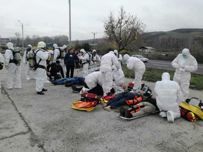 Conform scenariului, pe raza localităţii Răscoleşti, comuna Izvorul Bârzii, din cauza neadaptării vitezei la condiţiile de trafic, un microbuz, în care se aflau 16 persoane, a intrat în coliziune cu o autoutilitară, ce transporta o substanţă radiologică, în autoutilitară aflându-se alte 4 persoane. Dintre cele 20 de persoane implicate în accident, trei erau blocate şi aveau nevoie de descarcerare, iar altele se aflau în stare gravă, neputându-se evacua.