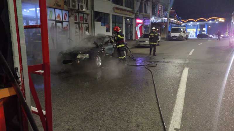 Un autoturism a fost cuprins de flăcări aseară pe strada Revoluţiei din municipiul Drobeta Turnu Severin.