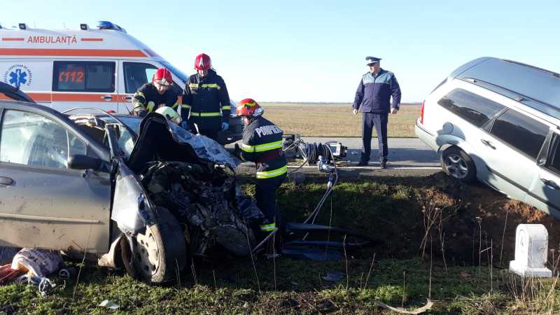 Un grav accident s-a petrecut, în urmă cu puţin timp, pe DN 56 A, în localitatea mehedinţeană Punghina, după ce două autoturisme s-au ciocnit frontal.