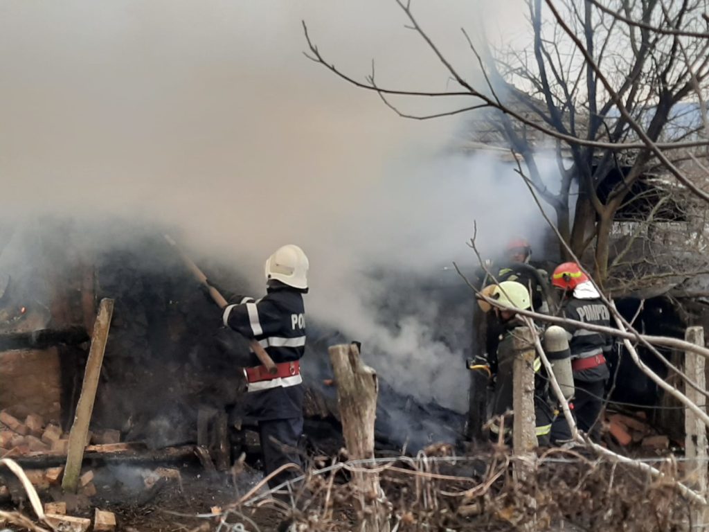În aceste momente, pompierii mehedințeni intervin pentru stingerea unui incendiu izbucnit la o anexă gospodărească în orașul Vânju Mare.