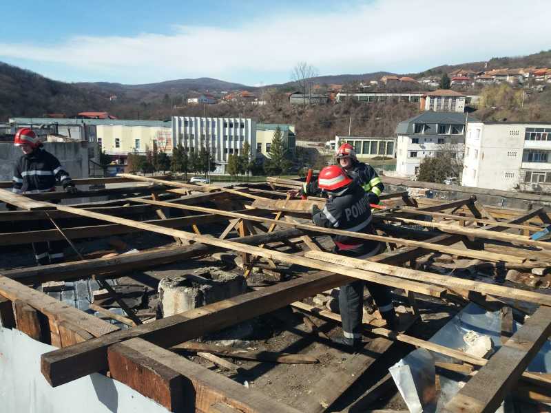 Totodată, un echipaj de pompieri din cadrul Detașamentului Orșova a intervenit, în municipiul Orșova, pentru îndepărtarea unor elemente de acoperiș (table) desprinse și în pericol de cădere, pe strada Eroilor.