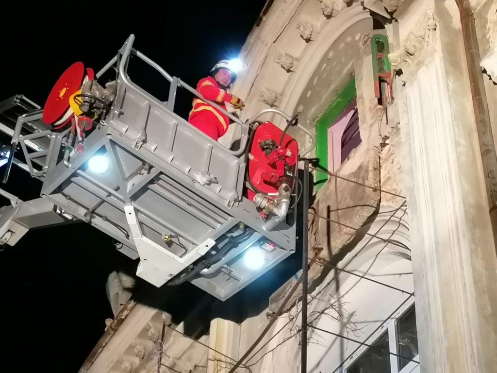 Tot sâmbătă seara, trei echipaje de pompieri din cadrul Detașamentului Dr. Tr. Severin au intervenit cu o autospecială de intervenție la înălțime, o autospecială de descarcerare și un autocamion, pentru îndepărtarea unor elemente de construcție, desprinse de pe fațada unei case de locuit, situate pe strada Carol I din municipiul Dr. Tr. Severin. Timp de cinci ore, pompierii mehedințeni au acționat pentru înlăturarea unui balcon și a unei plăci de beton armat de circa 400 kg, care puneau în pericol siguranța cetățenilor, riscând să se prăbușească peste balconul situat la etajul inferior, afectând intrarea în imobil.
