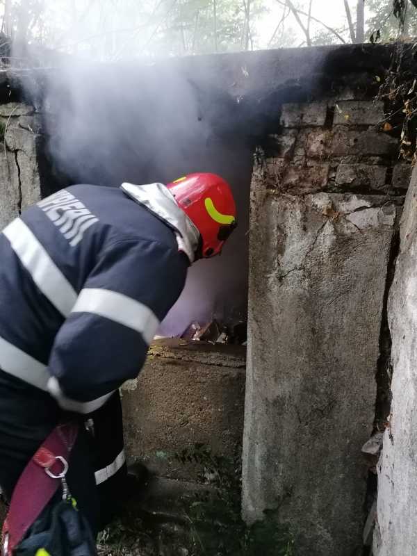 În aceste momente, pompierii mehedințeni intervin pentru stingerea unui incendiu izbucnit la o anexă gospodărească în orașul Vânju Mare.