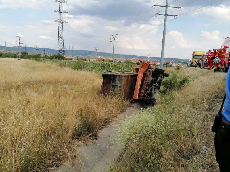 Trei echipaje de pompieri au intervenit la un accident rutier, produs pe centura ocolitoare a municipiului Drobeta Turnu Severin (zona Dudasul Cerneti).