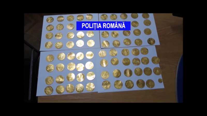 Polițiștii din Mehedinți au efectuat, ieri, două percheziții la două persoane bănuite de furtul a 115 monede din aur.