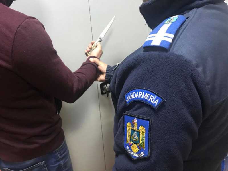 Aflându-se în misiunea de patrulare pe raza municipiului Drobeta Turnu Severin jandarmii au sesizat faptul că, pe terasa unui bar din zona unei stații de benzină, un bărbat discuta în mod aprins cu două persoane, amenințându-le cu acte de violență. În momentul în care s-au apropiat, jandarmii au constatat că bărbatul avea în mână un cuțit în lungime de aproximativ 30 cm, cu care amenința un bărbat și o femeie.