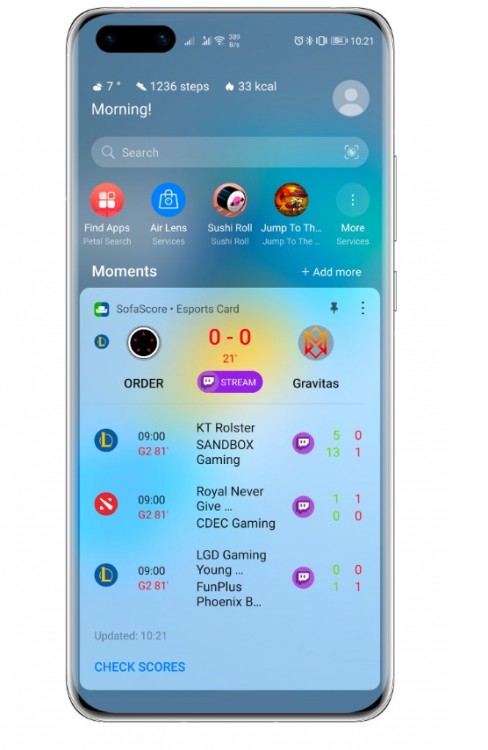 Prin integrarea cu HUAWEI Assistant, utilizatorii vor putea glisa la stânga pentru a accesa cardul Esports SofaScore, alături de multe alte carduri inteligente care oferă notificări și memento-uri utile, bazate pe nevoi personalizate și scenarii de utilizare specifice. De la știri și vreme, până la piața bursieră sau programul zborurilor, toate informațiile afișate depind de alegerea personală a utilizatorului. Așadar, prin intermediul funcției AI Tips din HUAWEI Assistant, utilizatorii vor primi rezultate și alerte, în timp real, conform preferințelor identificate în materie de jocuri, echipe sau subiecte Esport.