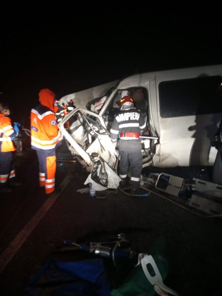 Accident teribil. Răniții – salvați după ce pompierii au tăiat mașina