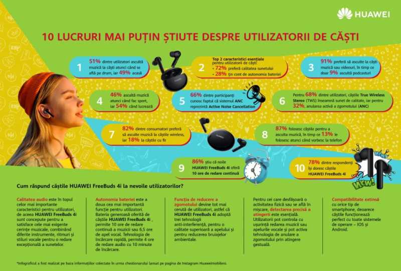 Huawei prezintă 10 lucruri mai puțin cunoscute despre utilizatorii de căști din România