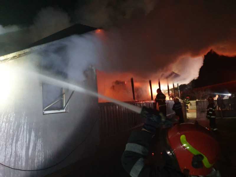 Echipajele intervin pentru limitarea și lichidarea incendiului care a cuprins anexa pe o suprafață de aproximativ 300 de metri pătrați.