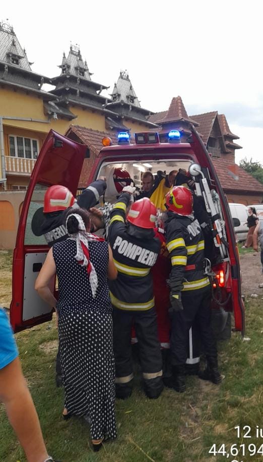 La sosirea salvatorilor, două persoane au necesitat îngrijiri medicale, după ce acestea au încercat să stingă incendiul.