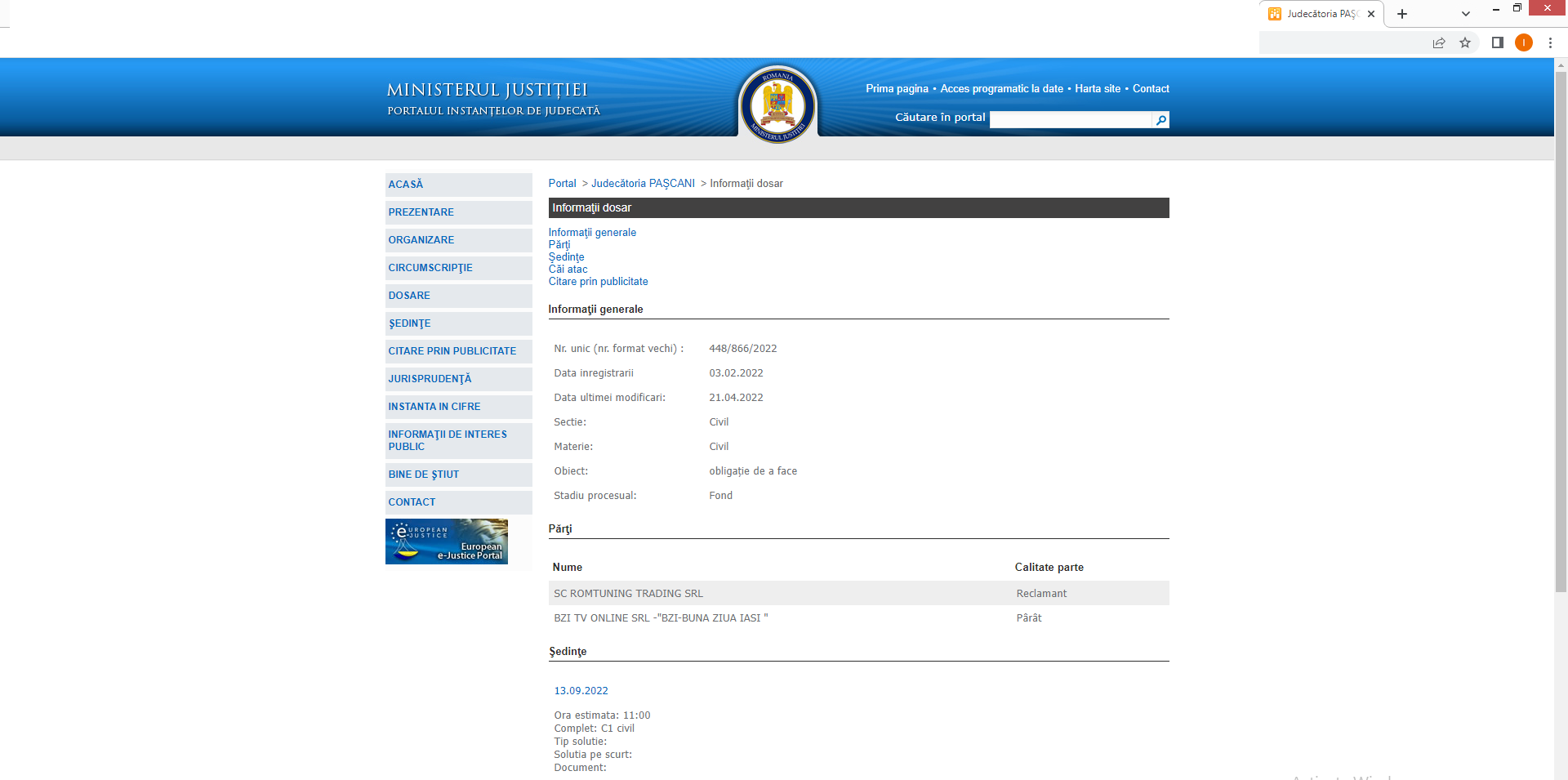 Mai joi va vom publica dosarele in care sunt dati in judecata BZI.RO DE reprezenta-ti rtt distribution srl .