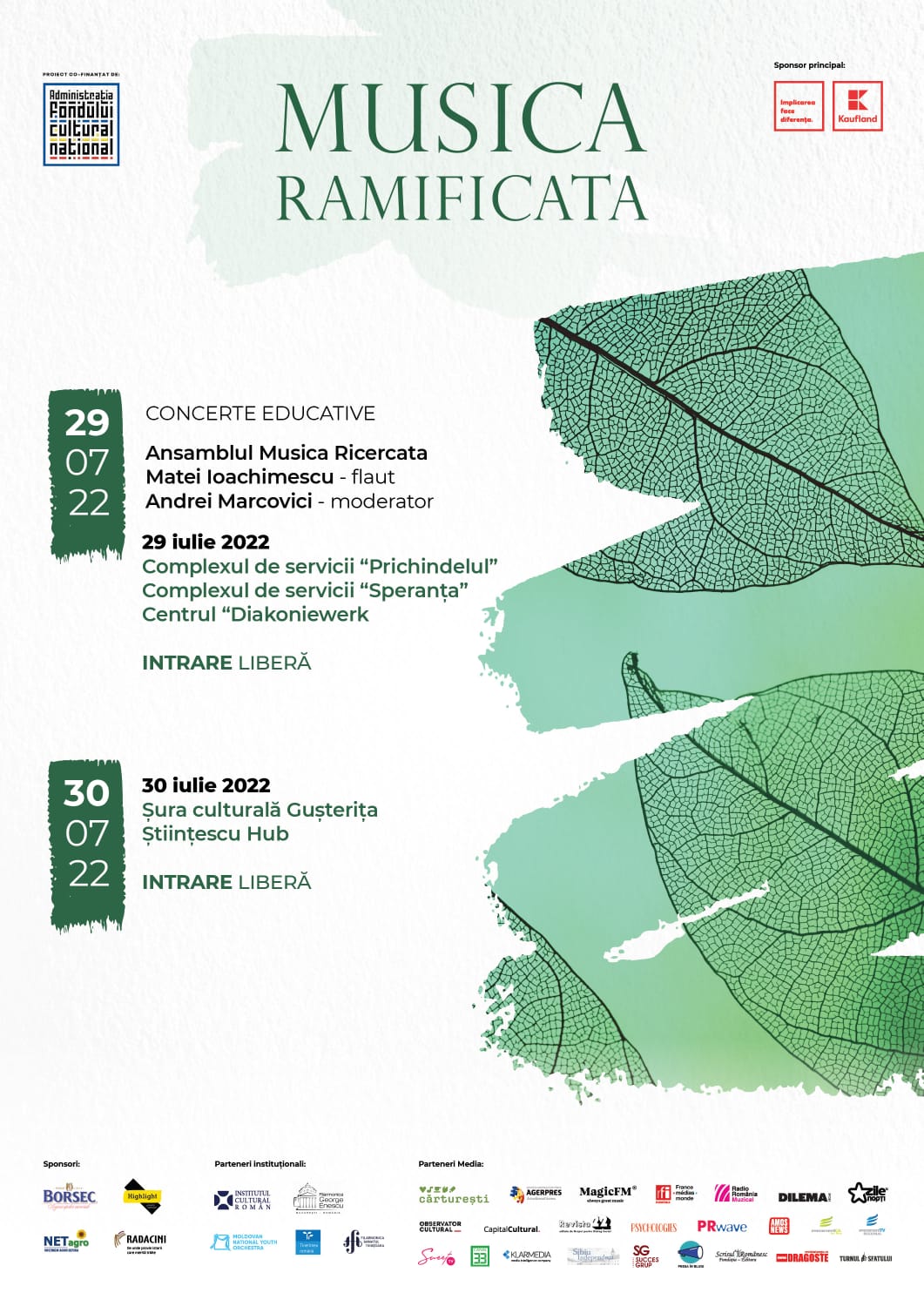 București, 25 iulie. Turneul național de muzică clasică „Musica Ramificata”, va avea loc între 26-30 iulie 2022, în București și Sibiu, alături de artiști locali și internaționali, cu scopul de a promova muzica contemporană, în tandem cu cea barocă, în concerte cu intrare liberă. Această ediție ajunge de această dată, inclusiv în centrele de plasament din Sibiu și împrejurări, prin recitaluri educative, obiectivul principal fiind aducerea muzicii cât mai aproape de copiii cu nevoi speciale.