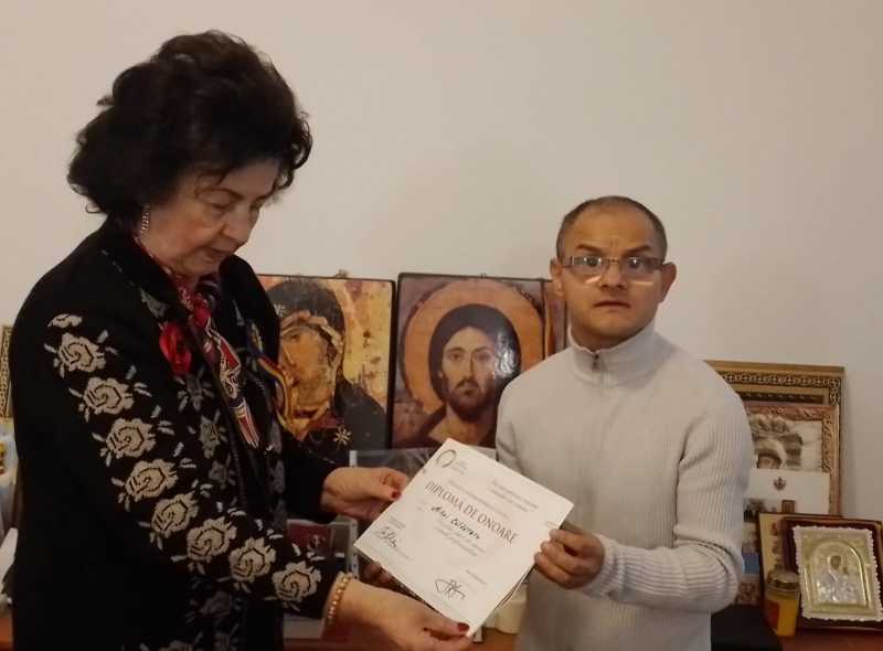 MIHAI CĂLDĂRARU A PRIMIT O DIPLOMĂ DE ONOARE DIN PARTEA DOAMNEI MINODORA ILIE, PREȘEDINTELE FUNDAȚIEI INTERNAȚIONALE OMENIA.