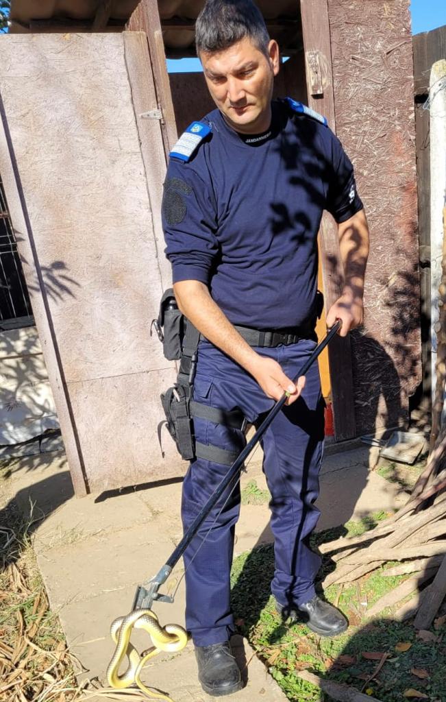 Un apel pe 112 a direcționat un echipaj al Jandarmeriei Mehedinți în localitatea Șimian, unde a fost semnalată prezența unui șarpe. Jandarmii s-au prezentat la adresa indicată, găsind în magazia locuinței un șarpe în lungime de peste un metru și jumătate. Acesta a fost îndepărtat și ulterior eliberat în mediul natural.