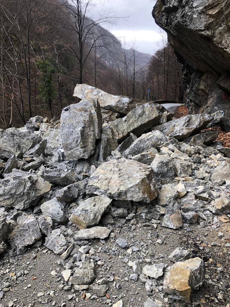 Se intervine cu un utilaj cu lamă pentru redeschiderea șoselei. Drumul este blocat pe ambele sensuri. Căderile de pietre sunt la Km 84 + 500, între Obârșia Cloșani și Herculane.