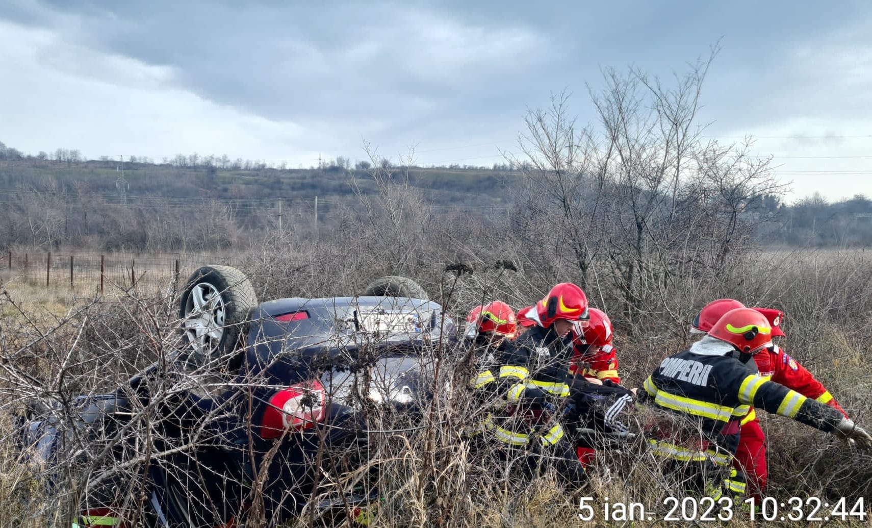 În accident, a fost implicat un singur autoturism care a părăsit partea carosabilă și s-a răsturnat.