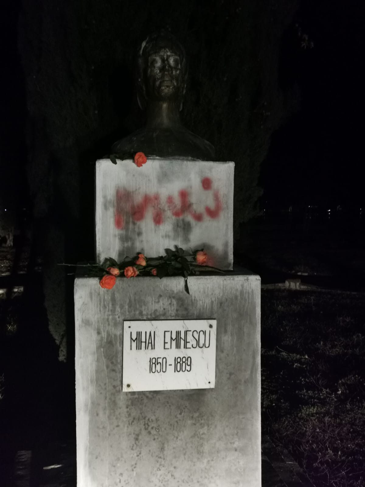 Statuia lui Mihai Eminescu din Orșova, vandalizată