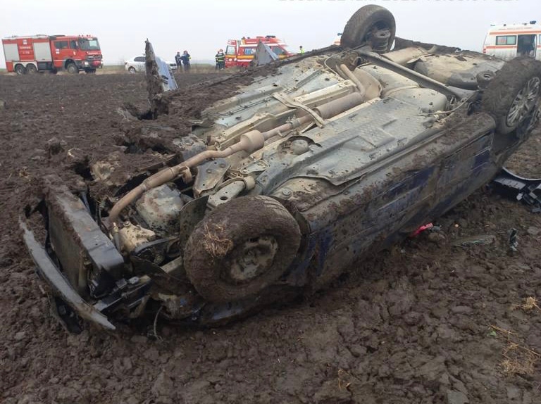 Patru persoane s-au răsturnat cu maşina, pe DN 56C, în județul Mehedinţi. Toate au ajuns la spital.