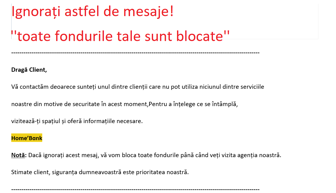 Atenție la hackeri, ignorați astfel de mesaje ”toate fondurile tale sunt blocate”
