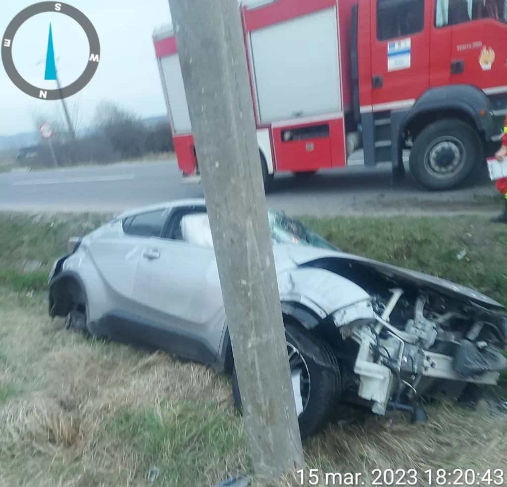 În accident a fost implicat un singur autoturism, care a părăsit partea carosabilă și s-a răsturnat. În interiorul acestuia se afla doar șoferul, care a fost scos de pompieri și predat unui echipaj al Serviciului Județean de Ambulanță.