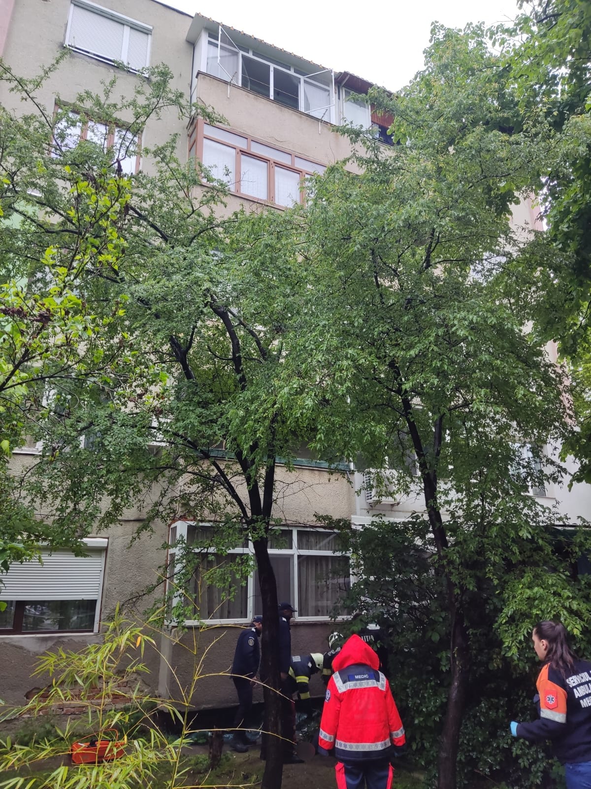 La sosirea pompierilor, bărbatul se afla imobilizat într-un element metalic. Acesta a căzut de la etajul IV al unui bloc de locuit.