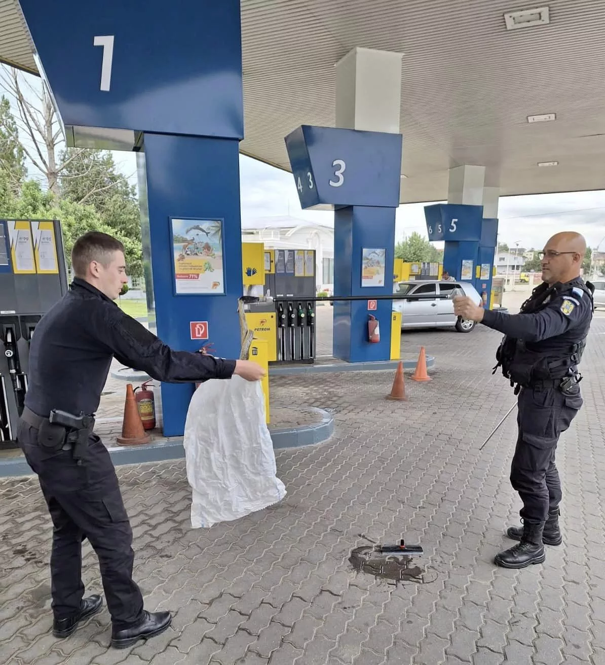 “Patrula mixtă care se afla în misiune a observat un şarpe încolăcit printre cablurile de alimentare ale unei pompe de benzină. S-a solicitat sorijinul echipajului de intervenţie pentru îndepărtarea acestuia. La adresa indicată, jandarmii au ridicat un şarpe în lungime de peste 150 centimetri. Ulterior l-au eliberat în mediul său natural”, a transmis Jandarmeria Mehedinţi.