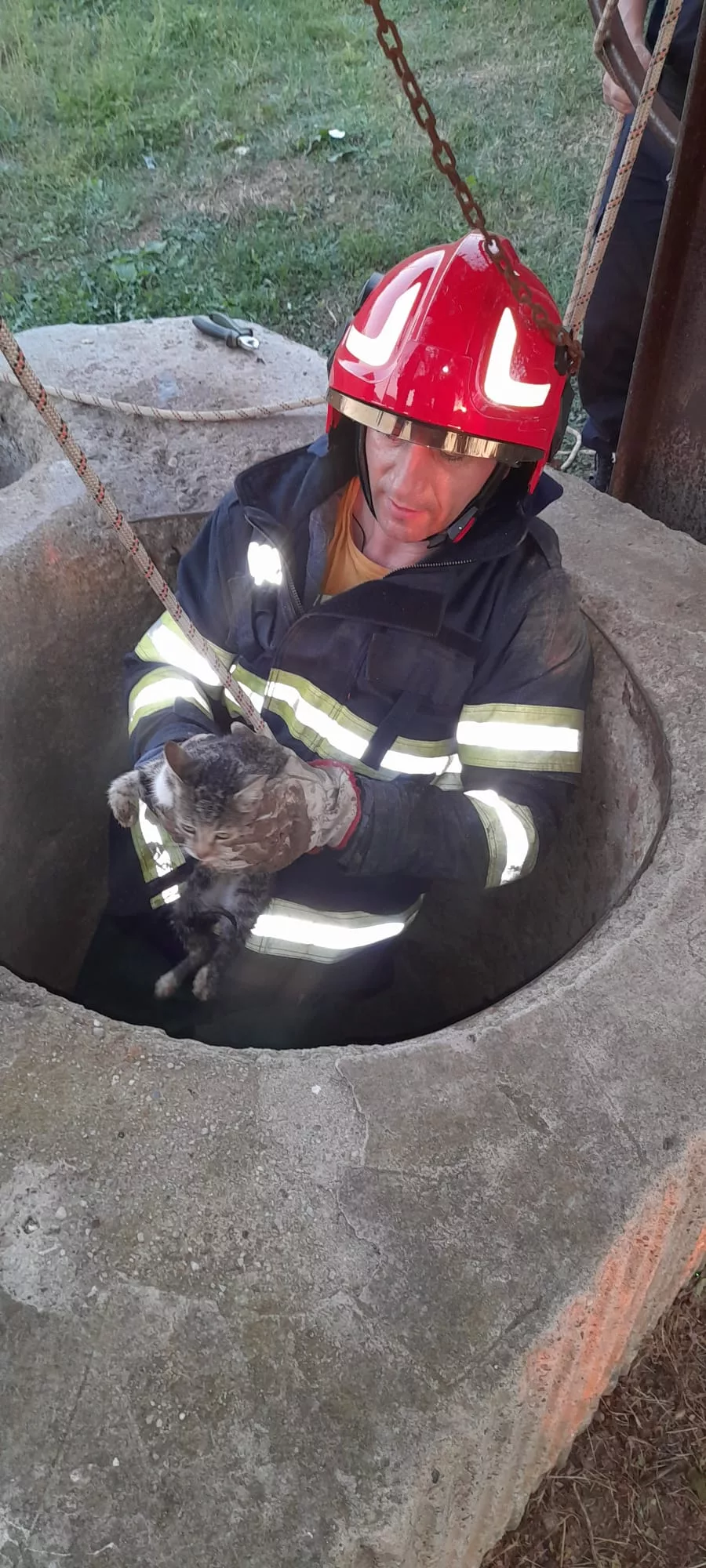 Misiune mai puțin obișnuită astăzi pentru pompierii mehedințeni. Ei au intervenit pentru salvarea unei pisici căzute într-o fântână, în satul Boceni, comuna Tâmna.