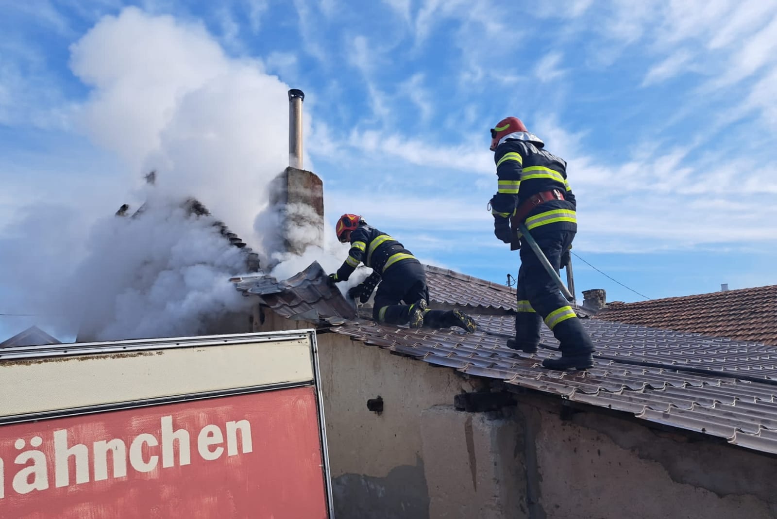 Echipajele intervin pentru limitarea și lichidarea incendiului care a cuprins anexa pe o suprafață de aproximativ 300 de metri pătrați.