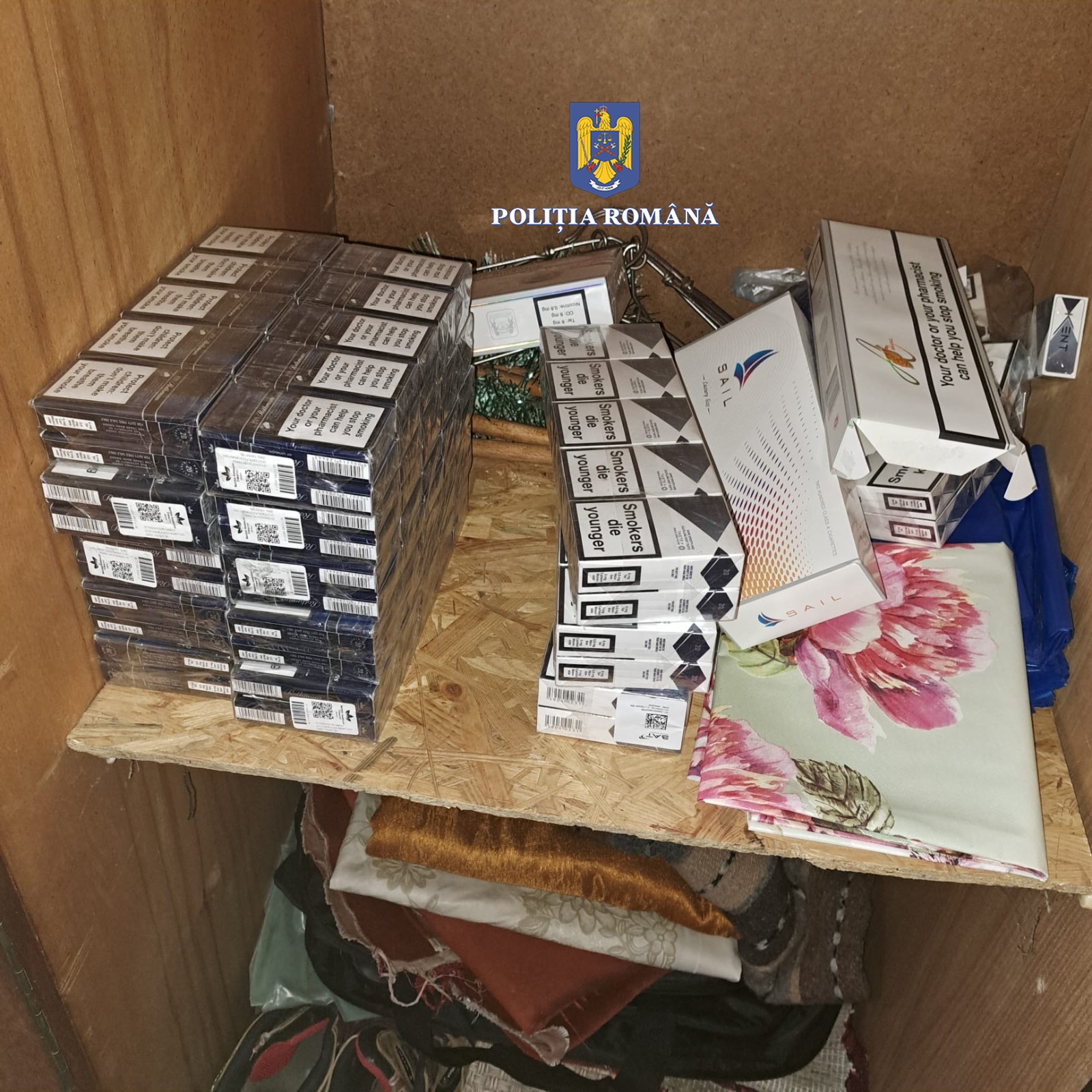 De la domiciliile a doi bărbați, de 49, respectiv 50 de ani, au fost ridicate 31.232 de țigarete de diferite mărci netimbrate, ce erau disimulate într-un recipient de plastic, ascuns în pământ, 3.370 de euro, 10.100 de lei, 3 telefoane mobile, cartele telefonice, precum și mai multe înscrisuri.