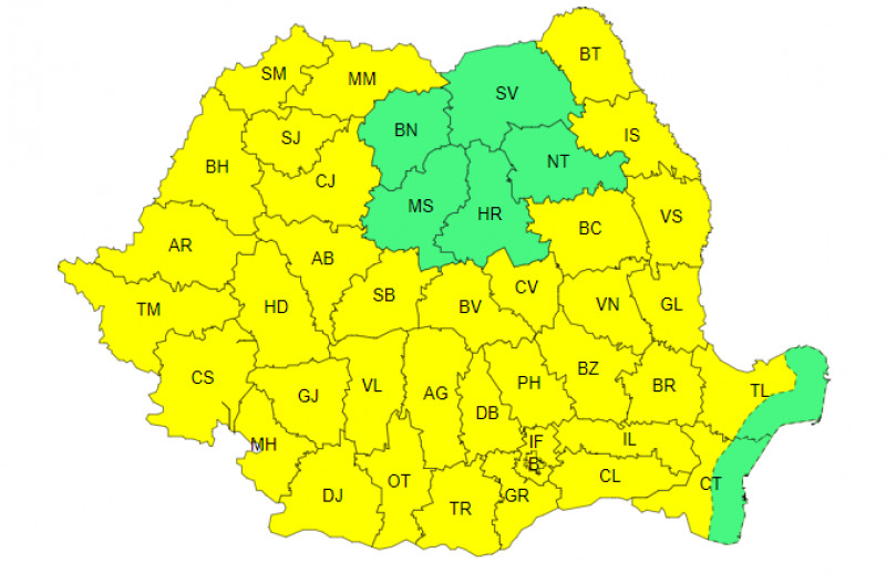 ANM a extins codul galben de caniculă, valabil astăzi, pentru aproape toată țara, iar pentru mâine a fost emis un cod portocaliu, valabil pentru mai multe județe din vestul și sudul țării, inclusiv București.