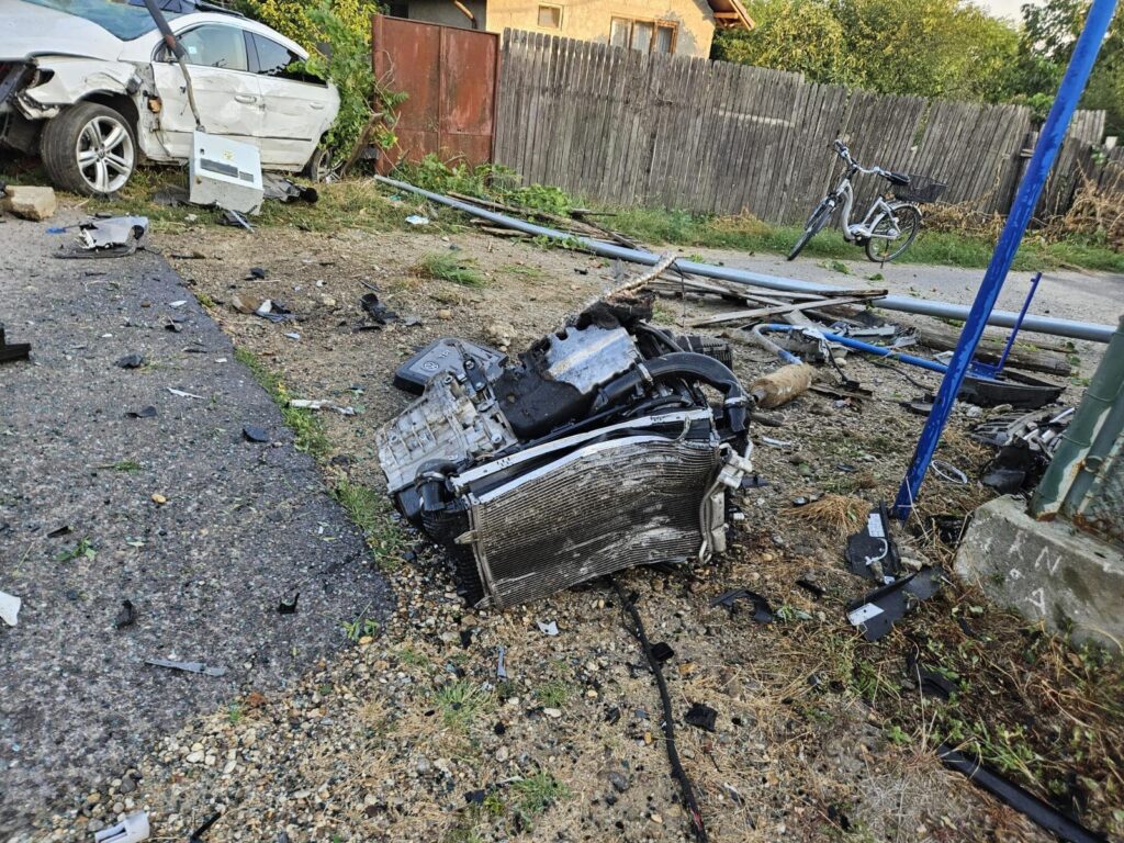 Impactul a fost atât de puternic, încât motorul autoturismului a zburat la câțiva metri distanță.