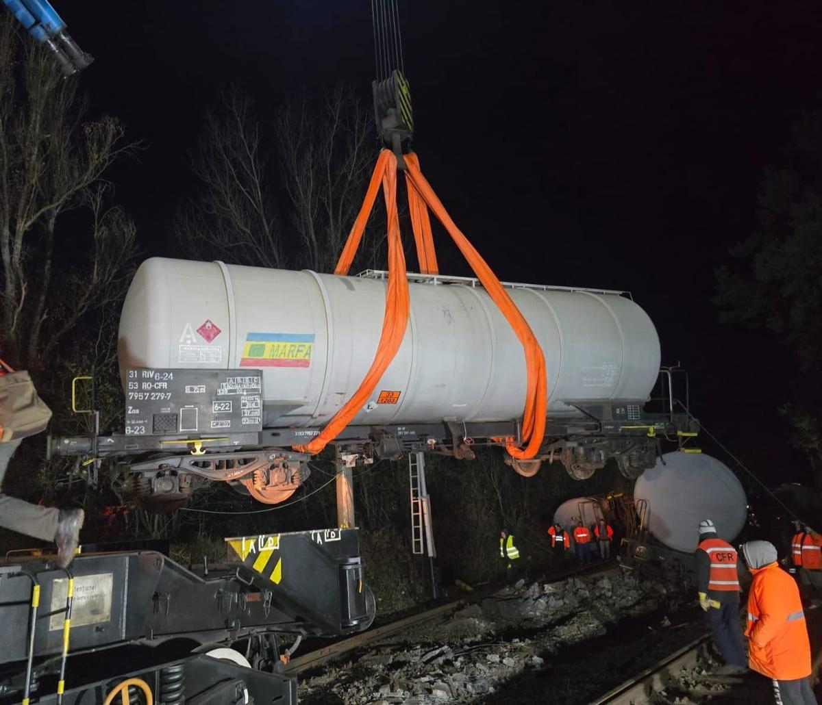 ”În cursul nopţii, în HM Igiroasa, au continuat operaţiunile de ridicare şi repunere pe şine a vagoanelor deraiate/ răsturnate rămase. La ora 07:50 au fost repuse pe şine toate vagoanele deraiate/răsturnate implicate în accidentul feroviar din data de 05.11.2024”, anunţă vineri Compania Naţională de Căi Ferate “CFR” SA.