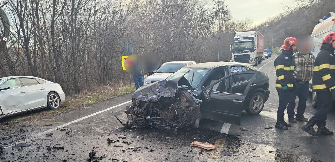 Un accident rutier s-a petrecut, în această dimineaţă, pe DN6, între Şimian şi Balota, judeţul Mehedinţi, între trei autoturisme.