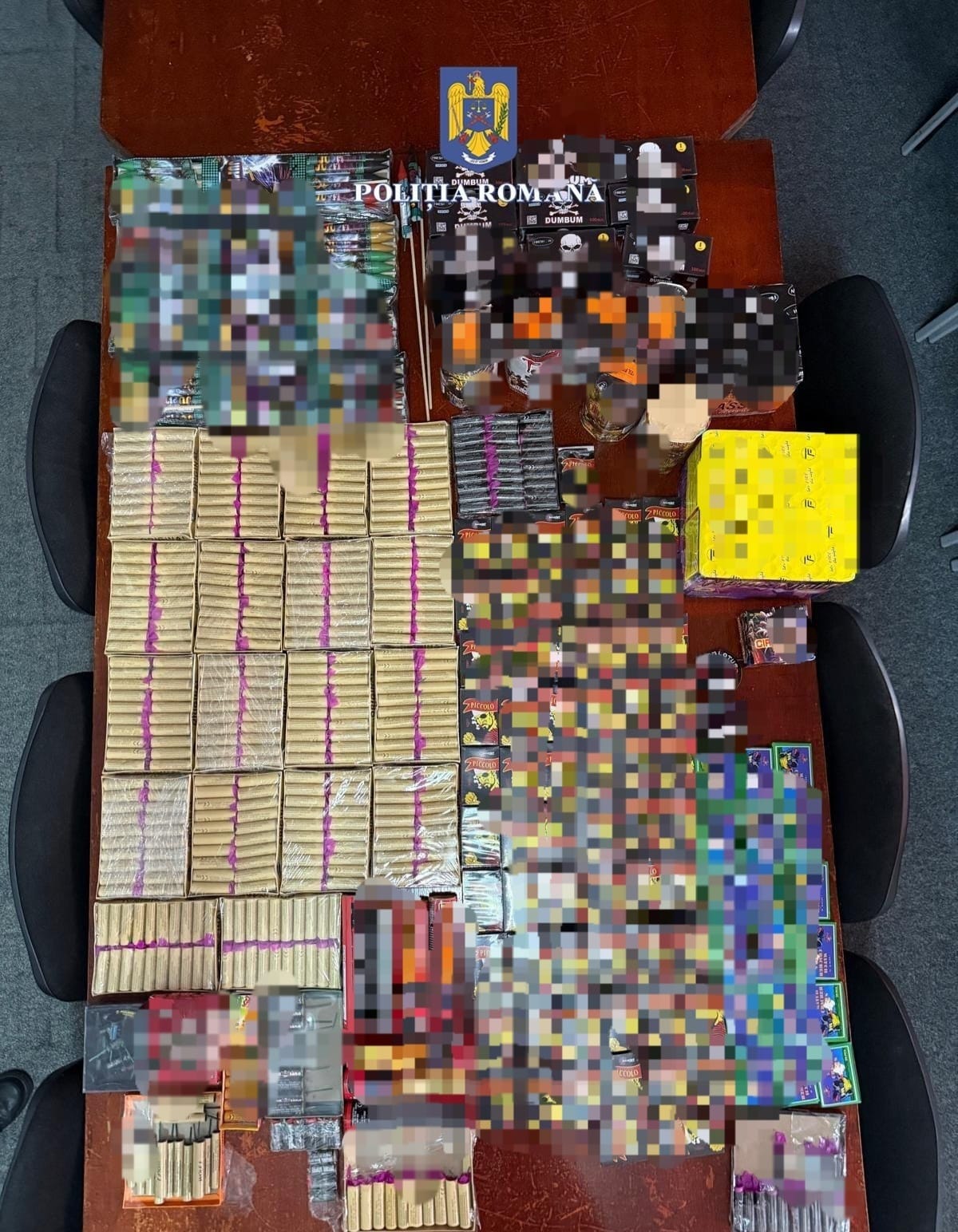 În urma percheziției au fost identificate 22 de kilograme de articole pirotehnice deținute ilegal în vederea comercializării.