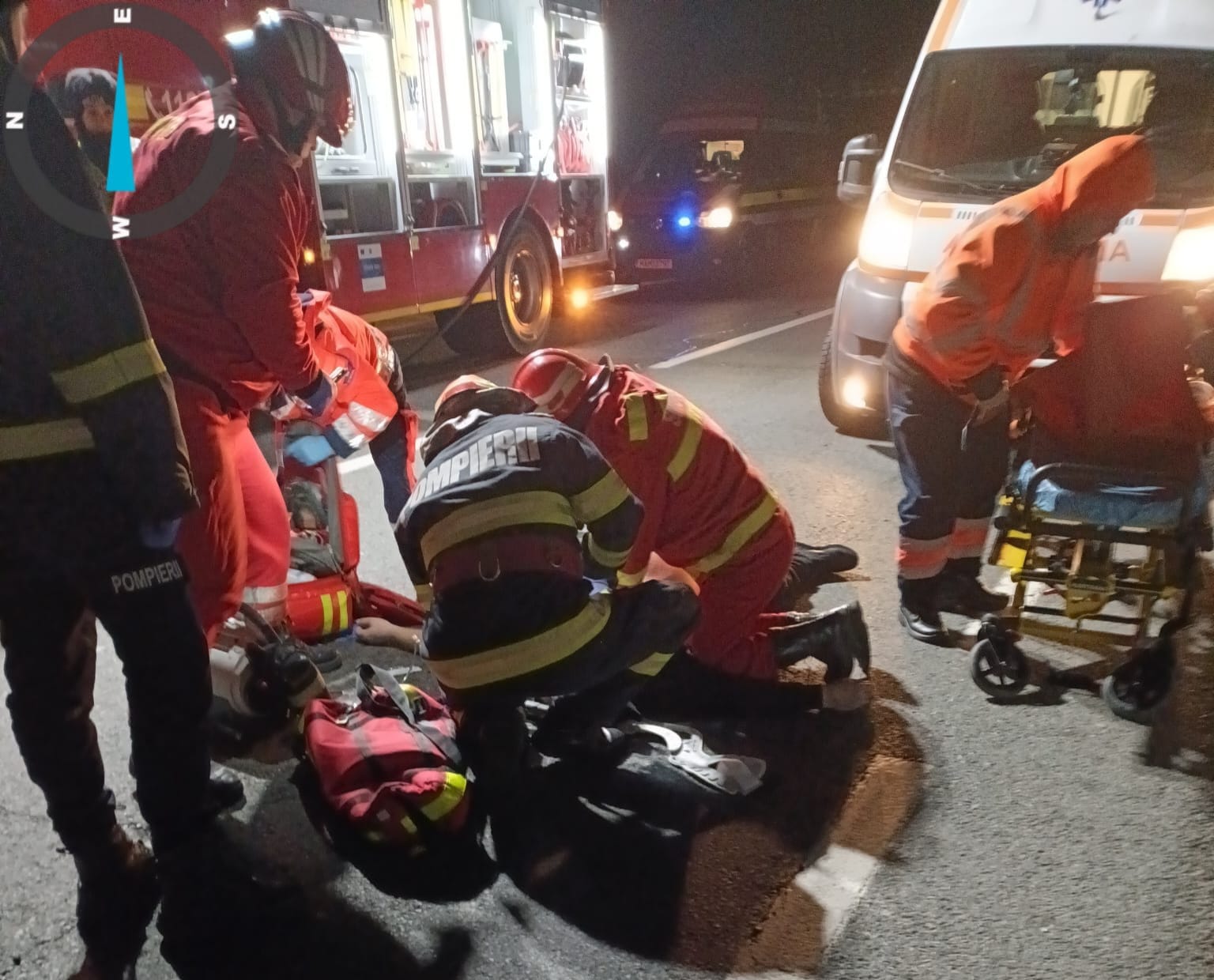 Stația de Pompieri Orșova a fost solicitată sâmbătă seară să intervină pentru descarcerarea unei persoane, victima unui accident rutier, produs între două autoturisme și un autotren, pe DN 6, la ieșirea spre localitatea Topleț.