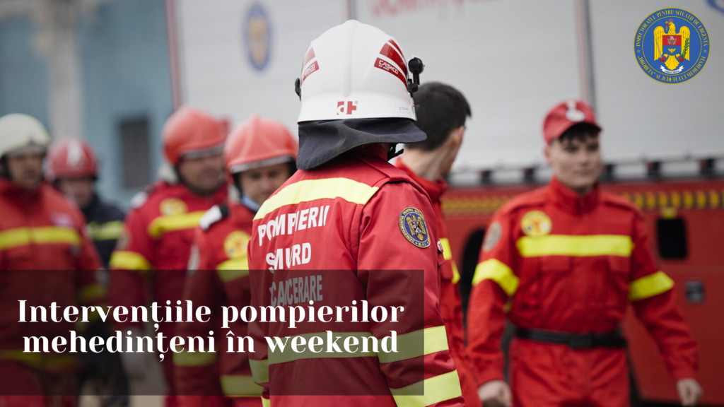 Pompierii militari mehedinţeni au intervenit, în acest weekend, pentru stingerea a șase incendii, gestionarea a trei accidente rutiere, dar și pentru acordarea asistenței de urgență unui număr de 35 de persoane cu diverse afecțiuni medicale.