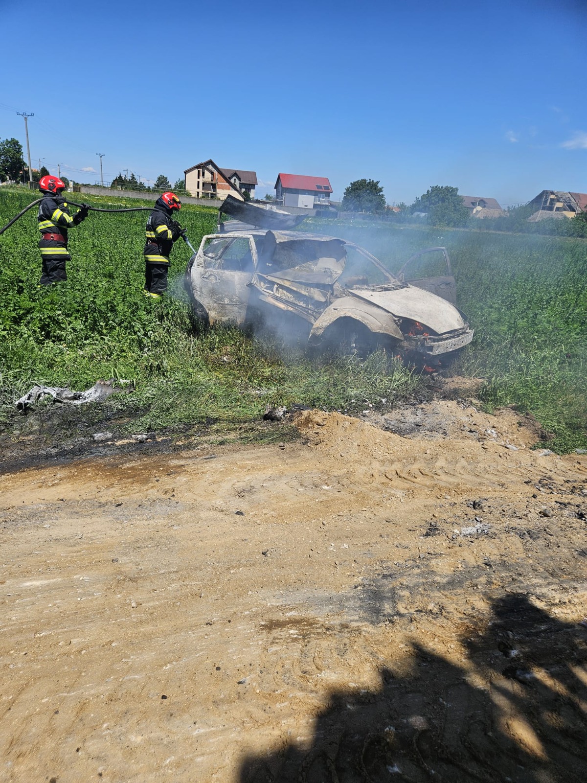 La sosirea pompierilor, incendiul se manifesta cu flacără deschisă la aproximativ 90% din autoturism.