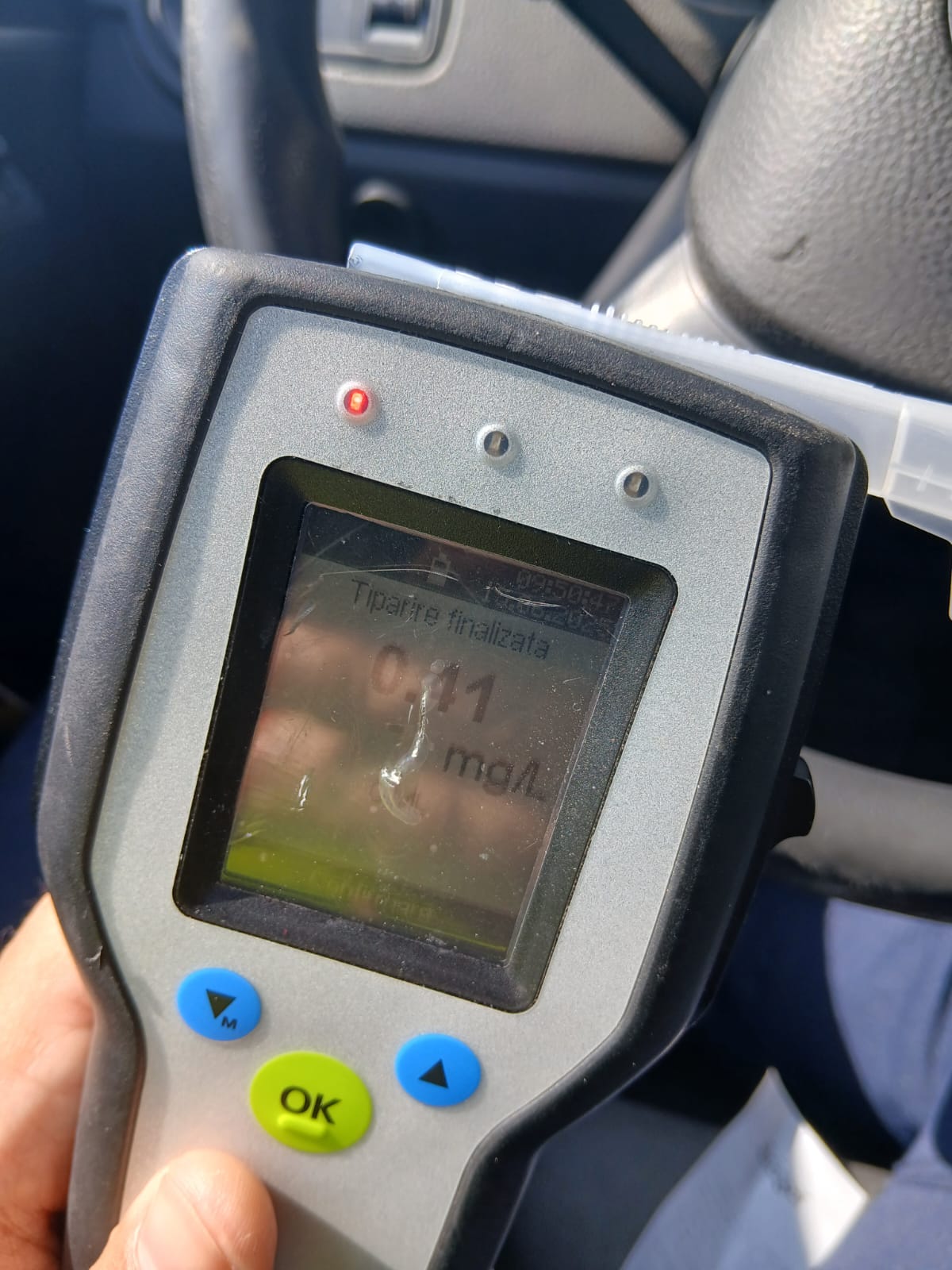 Conducătorul auto a fost testat cu aparatul alcooltest care a indicat o valoare de 0,41 mg/l alcool în aerul expirat. Acesta a fost condus la o unitate medicală pentru recoltarea de mostre biologice în vederea stabilirii alcoolemiei.