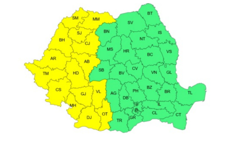 Atenţionarea meteorologică cod galben vizează intervalul orar 12.00 – 21.00, când sunt prognozate temperaturi deosebit de ridicate, caniculă şi disconfort termic. „Joi, în Maramureş, Crişana, Banat, Oltenia şi vestul Transilvaniei se vor înregistra temperaturi deosebit de ridicate pentru această dată, va fi caniculă şi disconfort termic ridicat. Temperaturile maxime vor fi cuprinse între 33 şi 37 de grade”, transmite ANM.