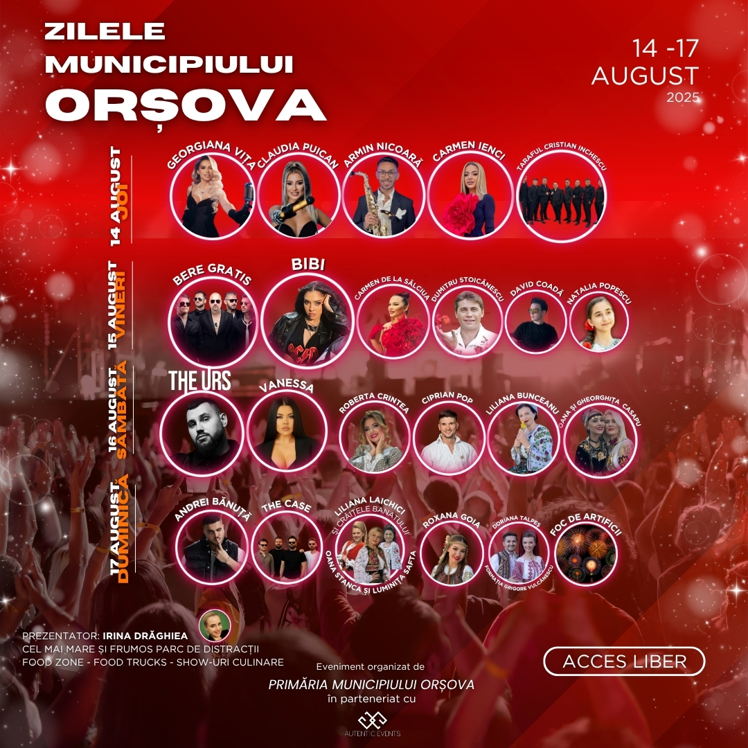 Orșova își deschide, în perioada 14 – 17 august, porțile pentru o nouă ediție memorabilă a evenimentului Zilele Municipiului. Este un festival al bucuriei, muzicii și tradițiilor care transformă orașul de la malul Dunării în centrul distracției estivale.