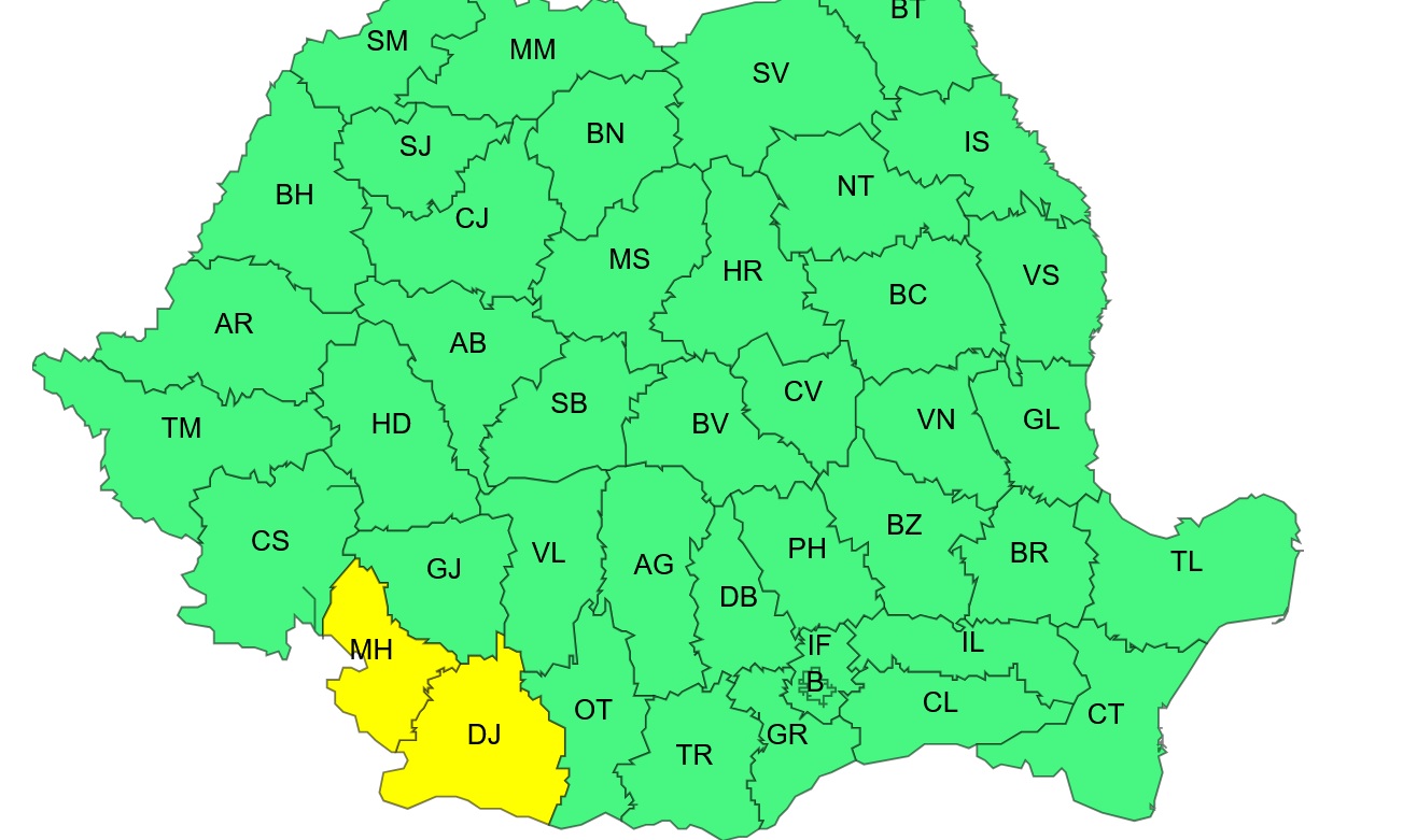 Administrația Națională de Meteorologie (ANM) a emis o atenționare Cod galben de vânt puternic, valabilă miercuri, 17 septembrie, în județele Mehedinți și Dolj, unde rafalele vor atinge viteze de 50–70 km/h.