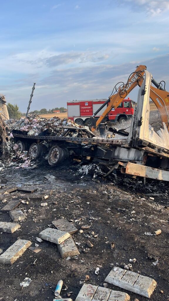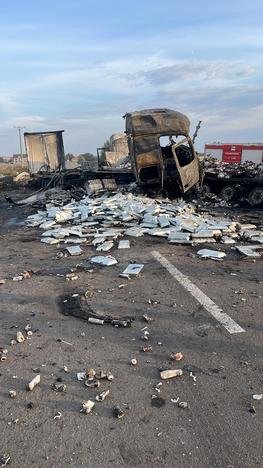 În urma evenimentului rutier a izbucnit un incendiu care s-a propagat la toate cele trei vehicule. La locul accidentului au intervenit pompierii de la Staţia Vanju Mare.