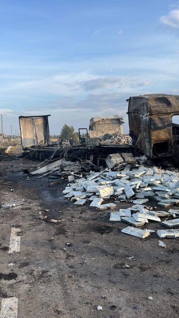 Unul dintre şoferi a fost transportat la spital de ambulanţa SAJ. Un alt şofer, de naţionalitate bulgară, a suferit răni la mâini şi la picioare, dar a refuzat transportul la spital. Şoferul celui de-al doilea TIR a refuzat şi el transportul la spital.