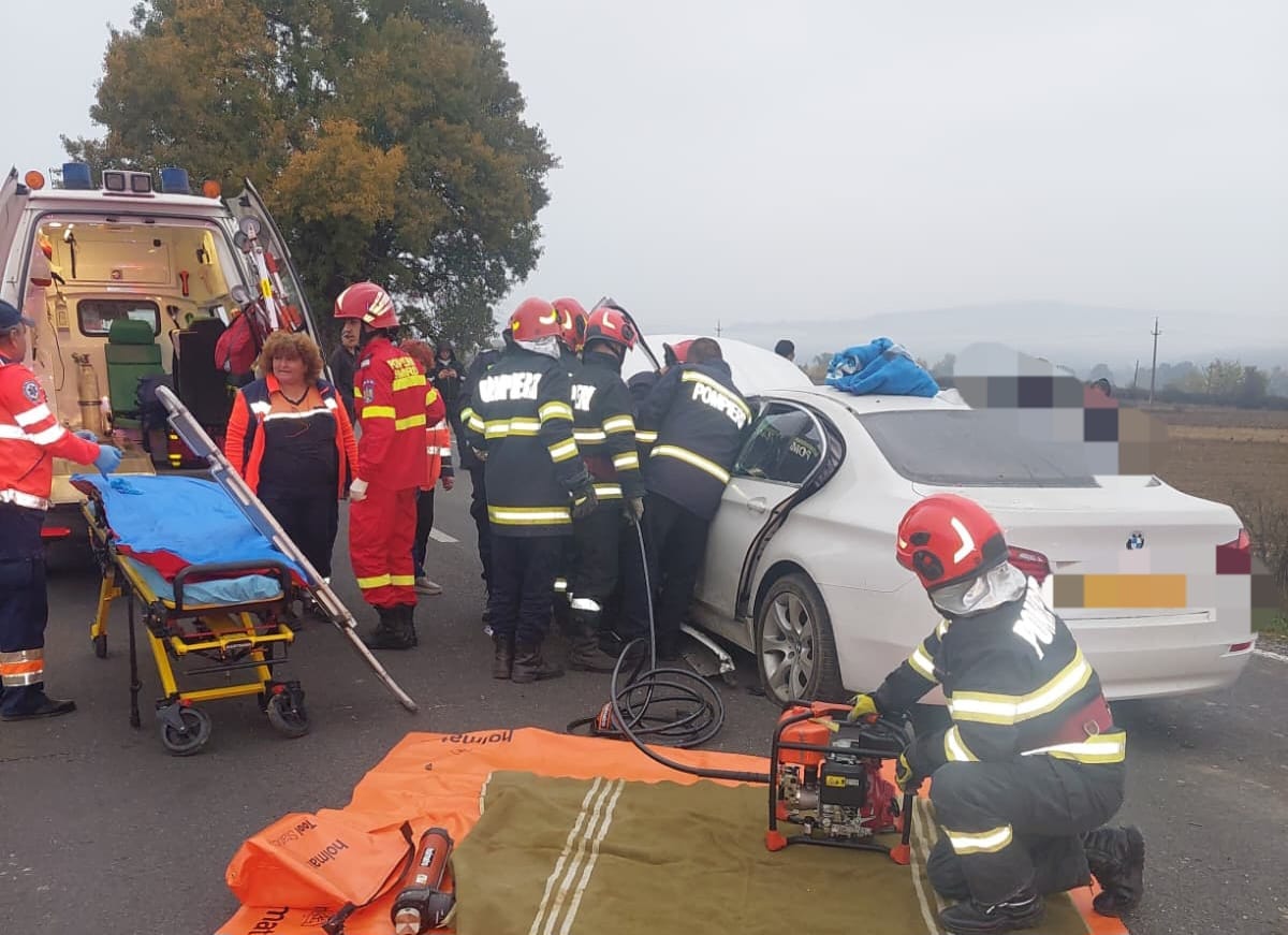 Pompierii acționează pentru deblocarea victimei și pentru asigurarea măsurilor de apărare împotriva incendiilor la locul evenimentului, pentru a preveni orice pericol suplimentar.