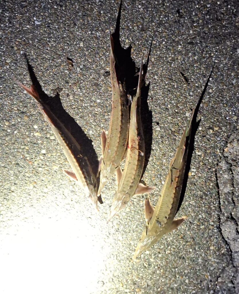 În satul Izvoarele, comuna Gruia, polițiștii și jandarmii au depistat doi bărbați, de 38 și 46 de ani, care capturau pește sturion în stare vie, potrivit IPJ Mehedinți.