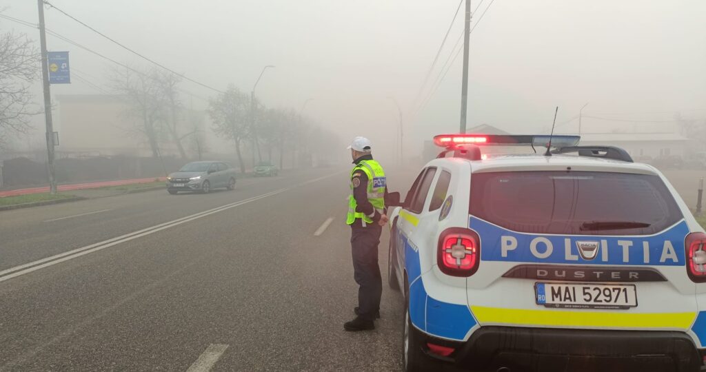 Odată cu instalarea fenomenului de ceață, echipajele de poliție acționează în teren pentru prevenirea evenimentelor rutiere cauzate de vizibilitatea scăzută și le recomandă participanților la trafic să respecte o serie de măsuri de siguranță.