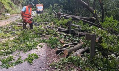 Angajații SDN Orșova au intervenit miercuri seară, pe DN 67D, în zona Godeanu, pentru a îndepărta de pe carosabil copacii rupți de furtună, a anunțat DRDP...